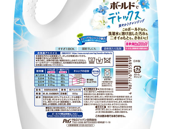 【検索用キーワード】ピーアンドジー ぴーあんどじー P&G ぼーるどえきたい ボールドエキタイ 洗濯用洗剤 衣類用洗剤 液体洗剤 850g 850グラム 本体 ホンタイ 1本 1個 フレッシュピュアクリーンの香り 柔軟剤入り 抗菌 消臭 洗剤 衣料用洗剤新発想洗濯水をデトックス!爽やか♪